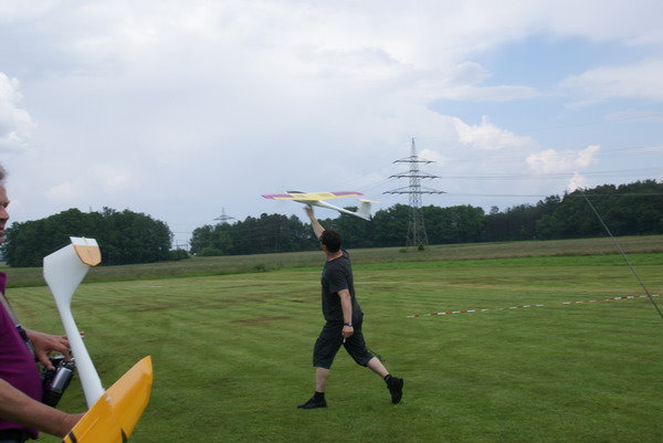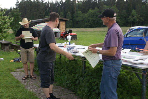Zwischen drin gab es das erste Mal bei uns einen Sky-Fighter Wettbewerb. Bei letzten Abfliegen hatte sich herausgestellt, dass im Verein inzwischen so viele eine Sky-Fighter haben, dass man da was machen kann.