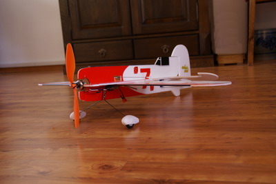 Die GeeBee von Arkai war mein erstes Flugzeug. Ich suchte damals ein einfach zu fliegendes, leichtes Flugzeug, das mit Fernsteuerung, Akku und Motor geliefert wird. Im Internet habe ich mir einige Filme über die GeeBee angesehen. Überwiegend waren das Torque-Videos und ich wußte damals nicht, daß das schwierig ist.
