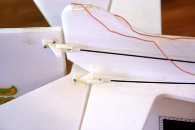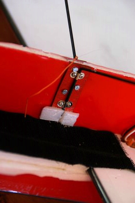 Die Querruderansteuerung wird mit einem Servo erledigt. Eines der beiden Klappen-Ruderhörner war falsch befestigt (falscher Winkel). Der Fehler ließ sich aber leicht beheben.