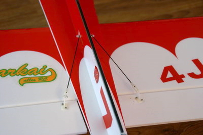 Die Ansteuerung der Ruder ist solide gemacht. Die Stangen besitzen Gewinde, um eine mechanische Längenkorrektur zu ermöglichen. Für das Geld richtig schön gemacht.