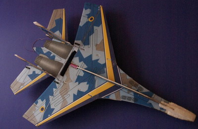Nachdem meine erste SU-27 durch "modding" so schwer geworden war, dass sie keinen Spaß beim Fliegen mehr machte (aber auch sehr robust gegen Abstürze war), habe ich das Teil geschlachtet und noch einmal gebaut.