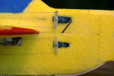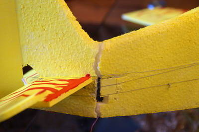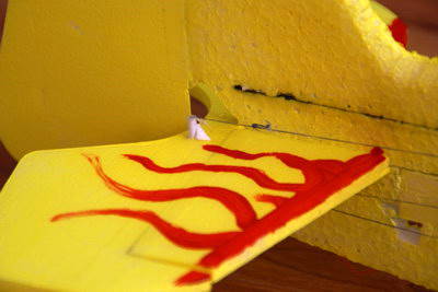Die "Ruderhörner" bestehen aus Kunststoffröhrchen, die mit kleinen Depron-Dreiecken an den Rudern befestigt sind.