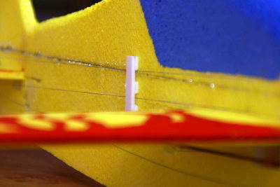 Da der Rumpf recht lang ist, habe ich zwischen drin eine "Schnurführung" aus Depron geklebt.