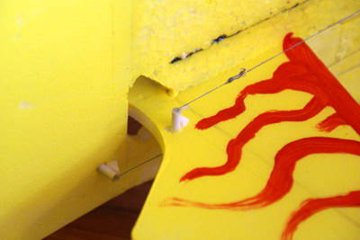 Hier sieht man schön die Servos mit den Angelschnüren.