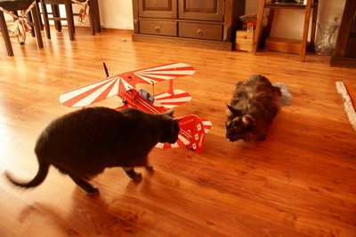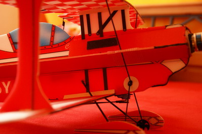 Die Tragflächen und der Rumpf weden nur einfach verklebt, was normalerweise hält, aber nicht bei einem Crash. Dann kann es passieren, daß die rotierende Masse des Motors, wenn über den Propeller blockiert den Rumpf weiterdreht (Restenergie). Der schert sich dann von den Tragflächen ab.