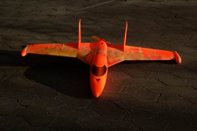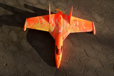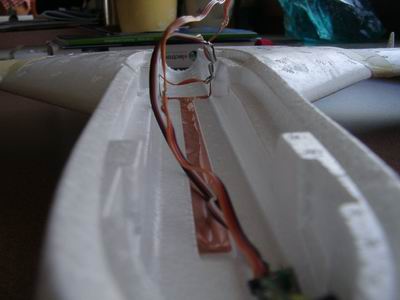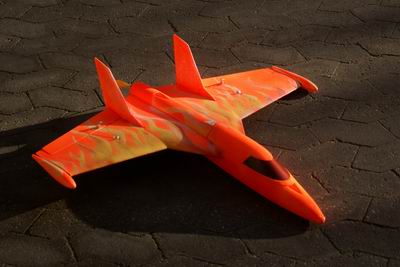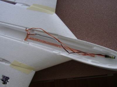 Die Servos habe ich entgegen der Anleitung auf der Oberseite der Tragfläche verlegt. Damit wird die Unterseite des Jets absolut unempfindlich. Der Glasfaserholm ist durch einen Kohlefaserholm ersetzt.