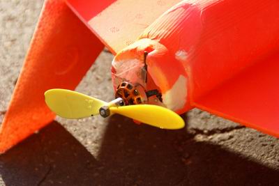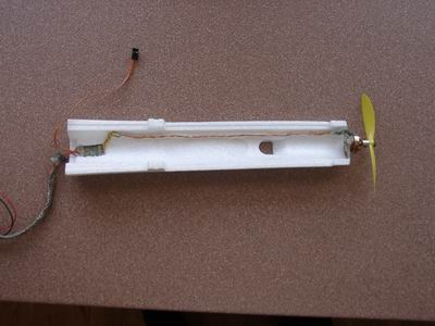 Aus einem früheren Vogel hatte ich ein Setup mit einem YGE12, einem 3s-Akku und einem gelben Günni-Prop (ca. 5x4,3). Das gibt lt. Drivecalc einen Schub von 550g.