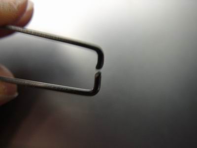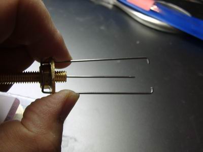 Ich habe mir einen 1mm Stahldraht genommen und so gebogen: