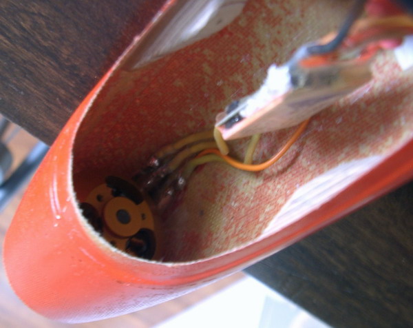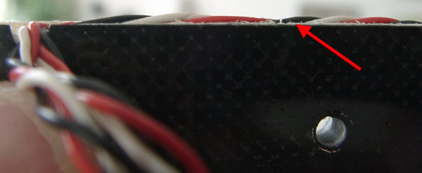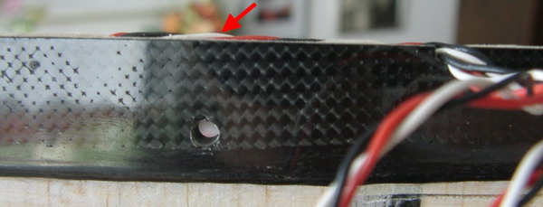 Die beschädigten Kabel des Motors habe ich mit Schrumpfschlauch (4:1, Innenkleber) wieder isoliert und dann sparsam mit Sekundenkleber am Rumpfboden fixiert, um ein Scheuern am Rotor des Motors zu verhindern.