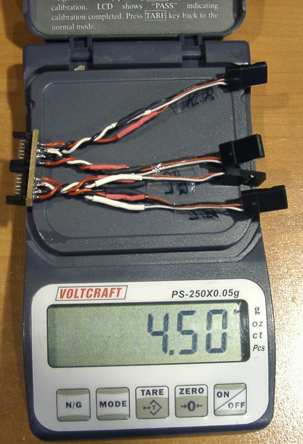 - Einbau eines UniSensE-Moduls (http://www.sm-modellbau.de). Wiegt 11,75g, aber ich habe gerne Meßwerte