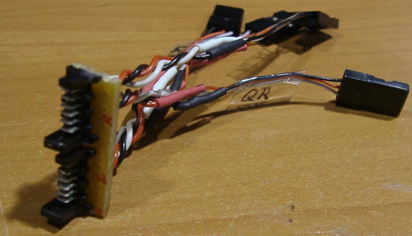Hier ist das Ergebnis zu sehen: die Kabelpeitsche, die in den Empfänger gesteckt wird und auf der anderen Seite die Tragflächen-Steckverbinder aufnimmt.