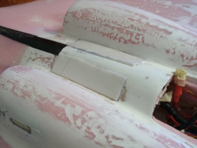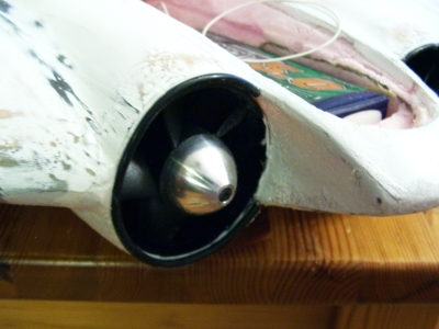 Um die Einlässe etwas zu verrunden, habe ich runde O-Ringe gekauft, diese angeschliffen und einen entsprechenden Kreissektor um die Impellereinlässe geklebt. In einem zweiten Schritt habe ich die Übergänge zuerst mit Epoxy/Glasbubbles ausgeglichen und dann noch mit Spachtel das Finish erzielt.