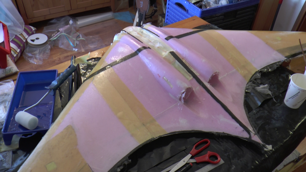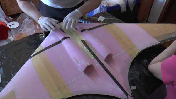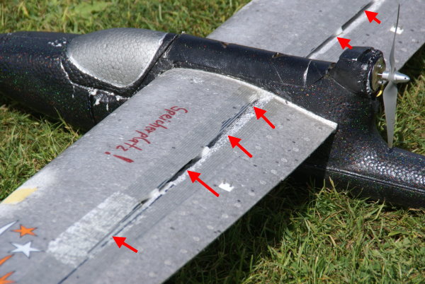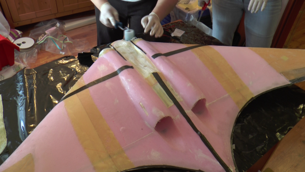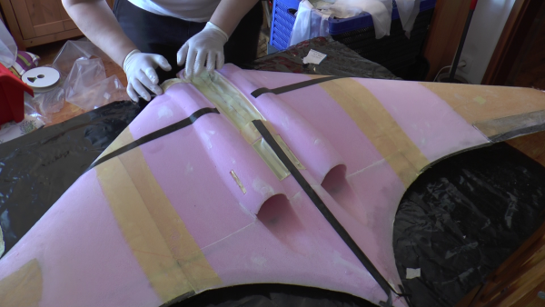 - Aufbringen von Aramidgewebe auf der Stoßstelle zwischen Rumpf und Tragflächen