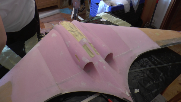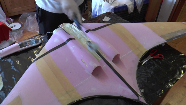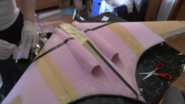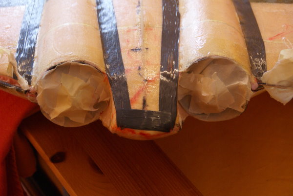 Armierung der Rumpfspitze mit Aramid-Gewebe.