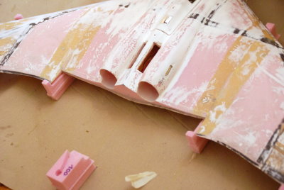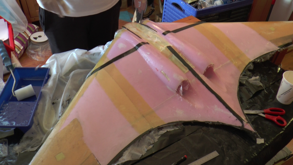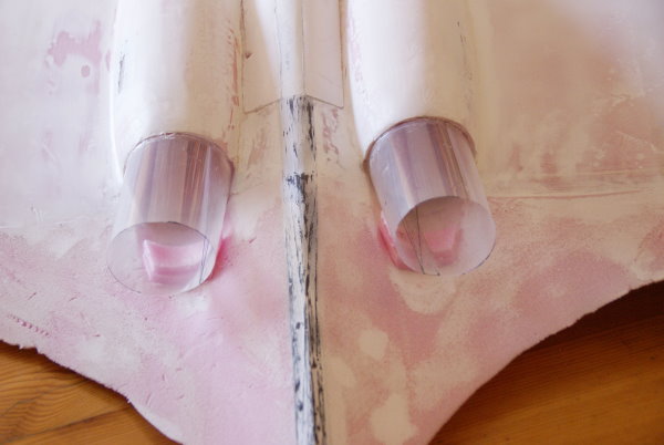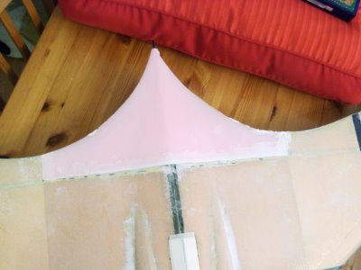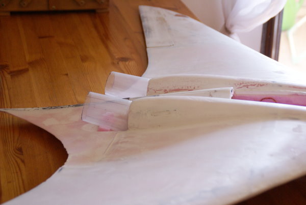 Hier habe ich den Hinterteil des Rumpfes mit 80g-Körpergewebe laminiert.