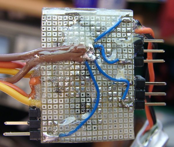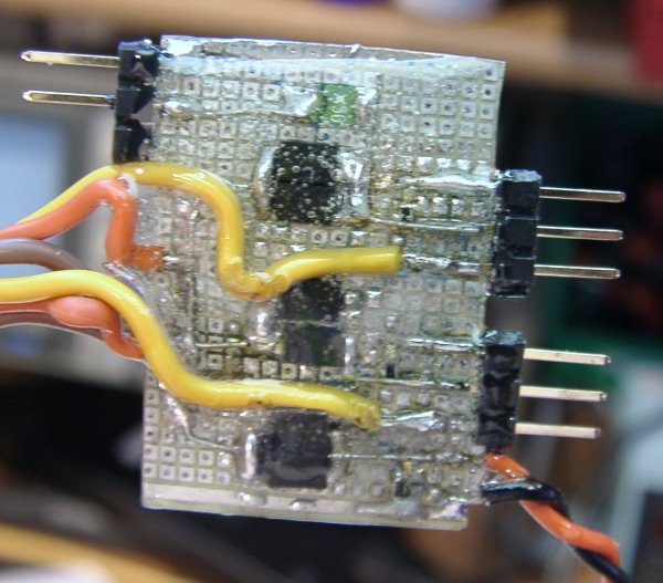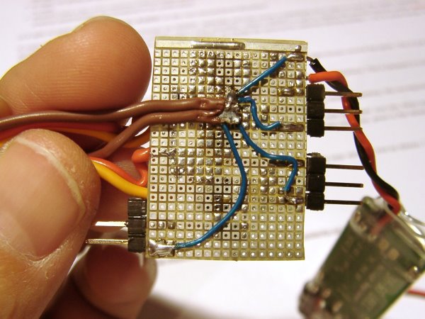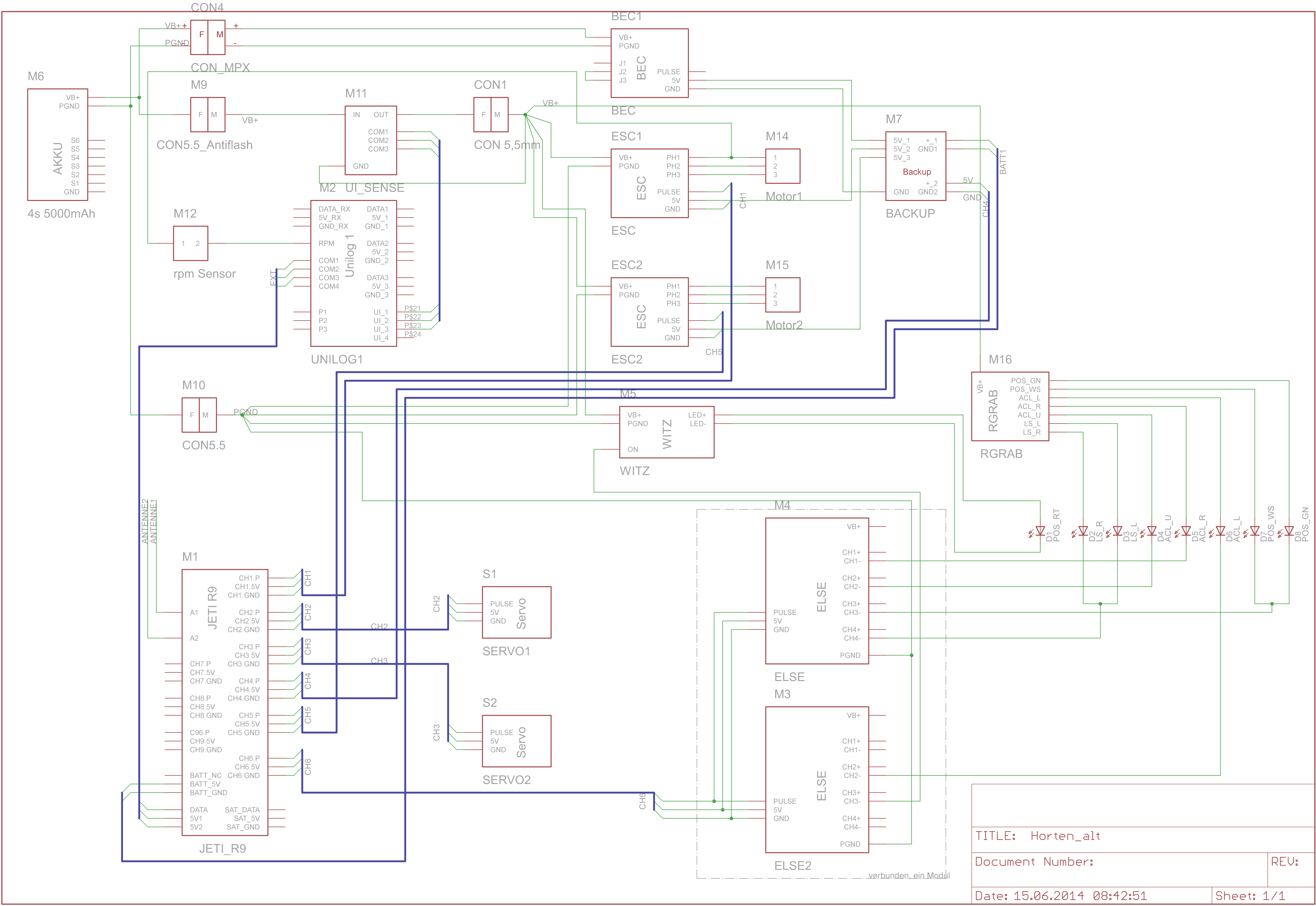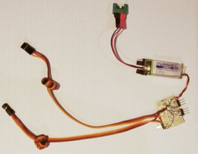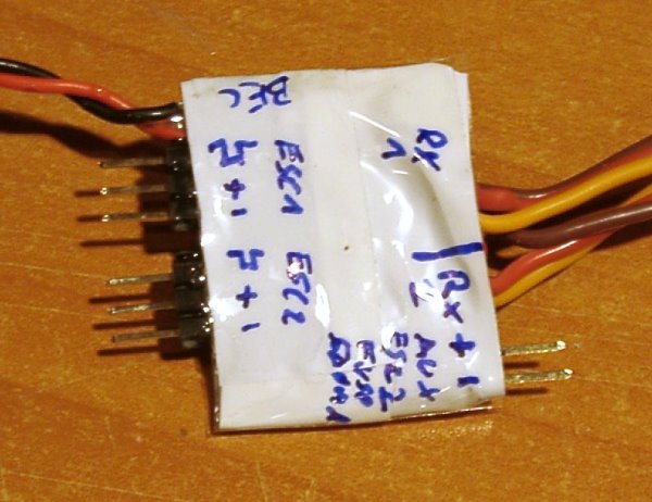 Im ursprüngichen Setup hatte ich vor, die beiden BEC der Regler und ein externes BEC in einer Diodenmatrix zu verschalten. Nach den Dioden sollten zwei unabhängige Kabel und Servostecker für Redundanz sorgen.