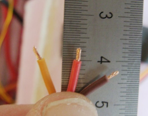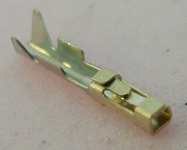 Abisolieren der Adern (nicht zuviel wegen der Zugentlastung); diese Crimpkontakte kommen zum Einsatz: