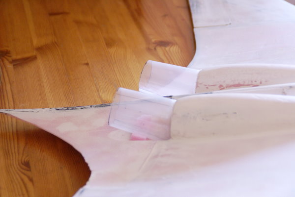 Nun kam das Körpergewebe (Atlasgewebe) , auf das ich schon sehr gespannt war. Das Gewebe ist besonders anschmiegsam. Allerdings ist es nicht besonders leicht. 80g oder mehr pro Quadratmeter ist normal.