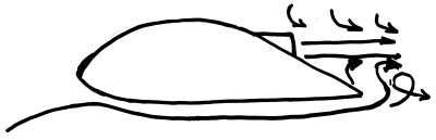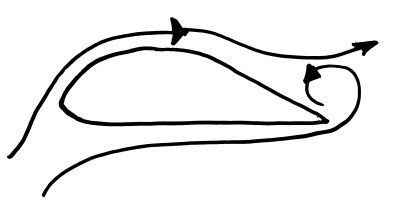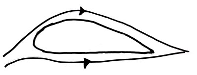 Bei einem normalen Profil strömt die Luft, stark vereinfacht, so über den Flügel: