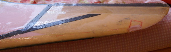 Um das Schwänzchen zu stabilisieren, habe ich einen Streifen UD-Carbon mit wenig Epoxid aufgeklebt.