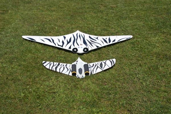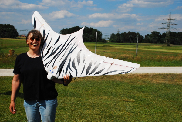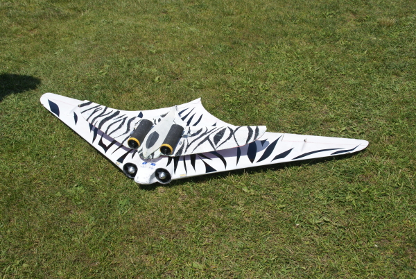Die Unterseite ist wie erwähnt im Zebra-Look. Die schwarzen Streifen sind Oracover mit 80°C gebügelt. Das Muster ist recht einfach zu schneiden, wenn man sich einmal ein paar Fotos von Zebras genauer angesehen hat.