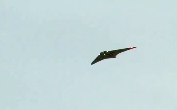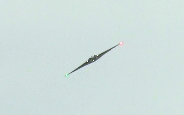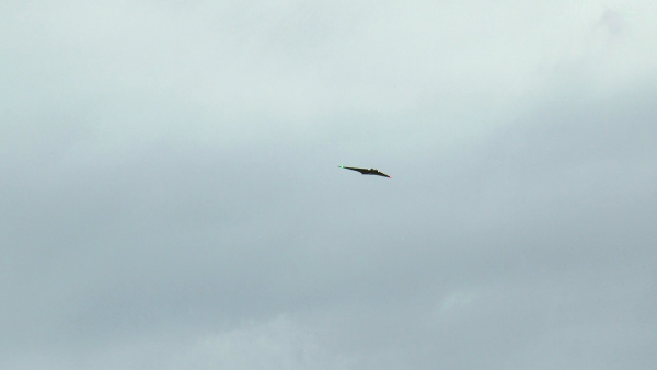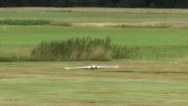 Hier fliegt die Horten recht nahe (50...100m) vorbei. Sichtbarkeit gut, Lageerkennung gut.