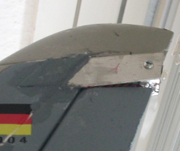 Nun kamen die Positionslichter dran. Hier ein herber Schlag. Anders als bei bisherigen Flugzeugen ist das Positonslicht (rot/grün) beim Eurofighter nicht vorne an der Flügelspitze (wäre zu einfach) sondern an der Flügelkante.