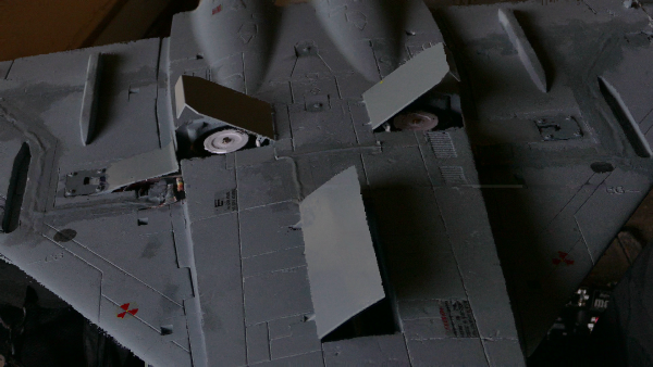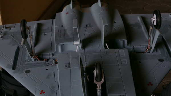 Mit einem Heissdrahtschneider wird der neue Kabelkanal gelegt. Man kann bereits gut die 16 Kabel erkennen, die pro Tragfläche verlegt sind. Dabei sind 4 Kabel für zukünftige Mods. Denkbar wäre Landeklappen und oder Vorflügel.