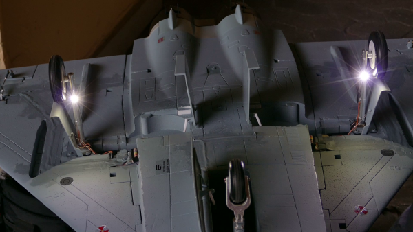 Die Eurofighter hat zwei Antikollisionsblitzer. Einen vorne unter dem Cockpit, einen hinten oben auf dem Rücken. Hier habe ich 5W-Lumileds (rot) benutzt, die gegen die originalen LEDs ausgetauscht weden. Da die ACLs nur Blitzen, betreibe ich sie mit 1A bei einem Dutycycle von 7% (Einfachblitz) und 8% (Doppelblitz).