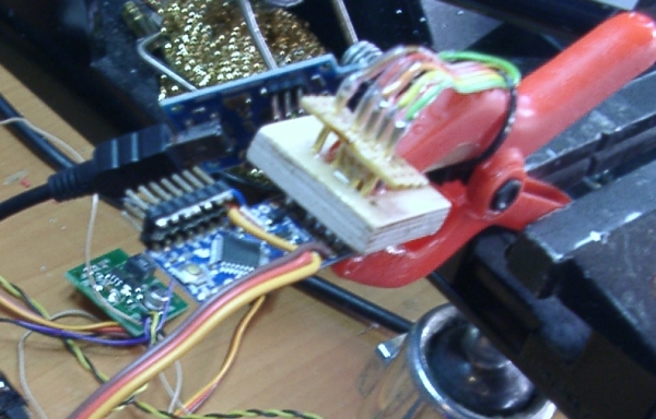 Auf der einen Seite gehen die Kabel weg, auf der anderen Seite kann im Bedarfsfall wieder die Programmierklammer aufgesetzt werden.