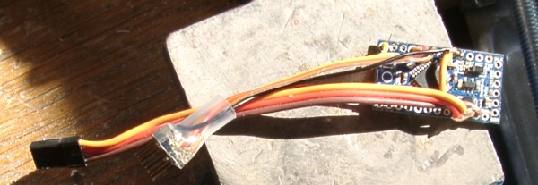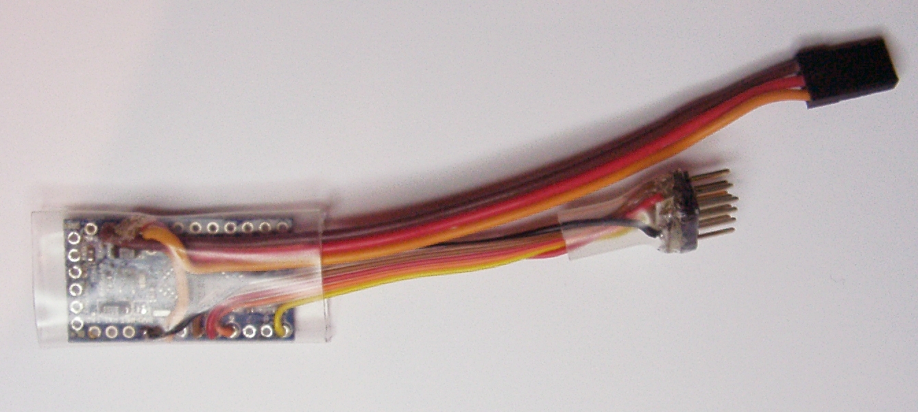 Der Arduino wird so angeschlossen, dass er bequem in einen Schrumpfschlauch eingeschrumpft werden kann.