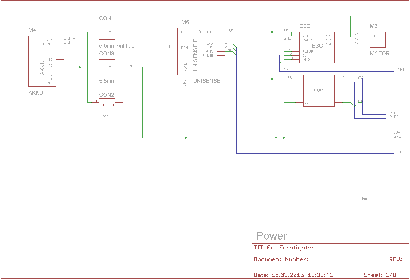 Weiter geht es mit dem Empfänger. Die UBEC-Versorgung ist doppelt ausgeführt (P_RC1 und P_RC2).