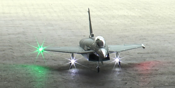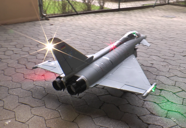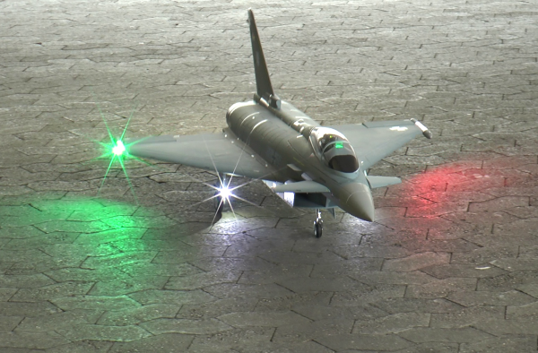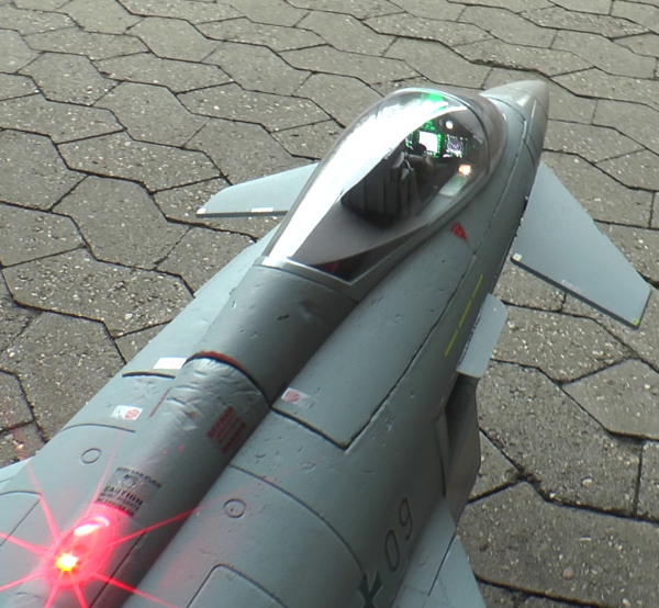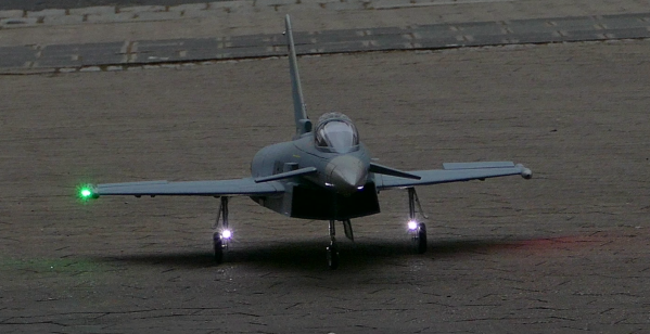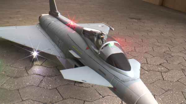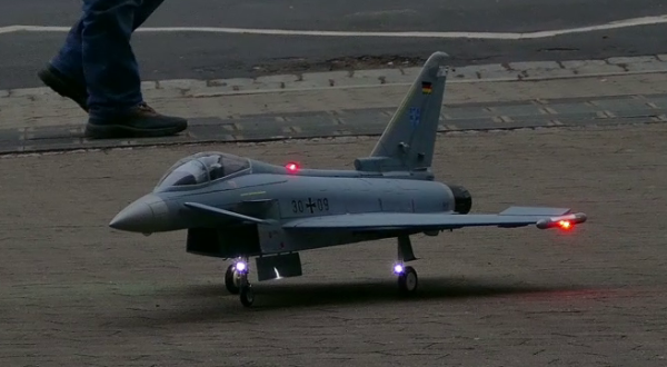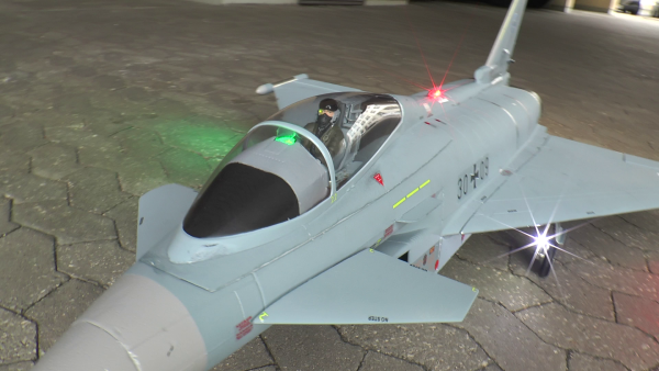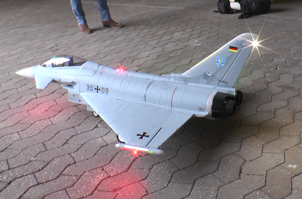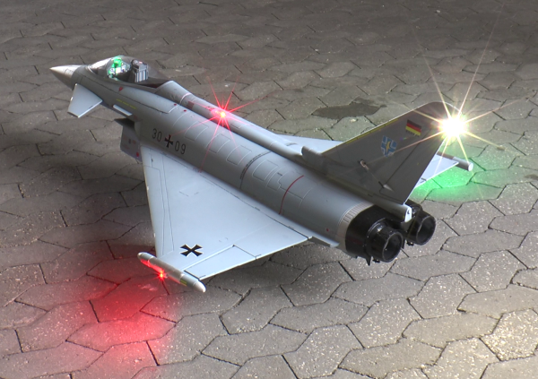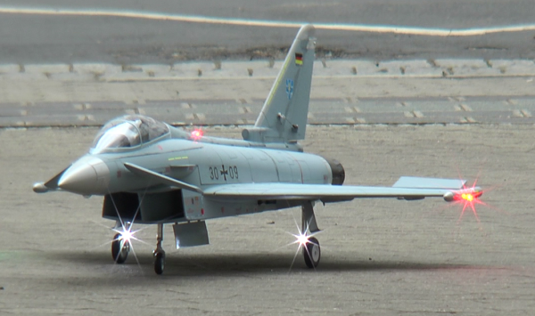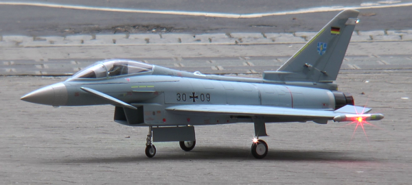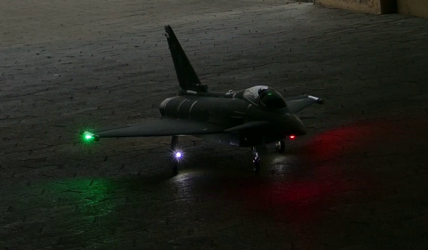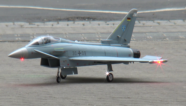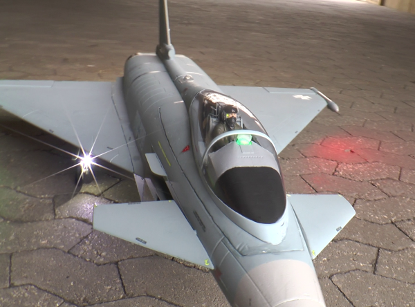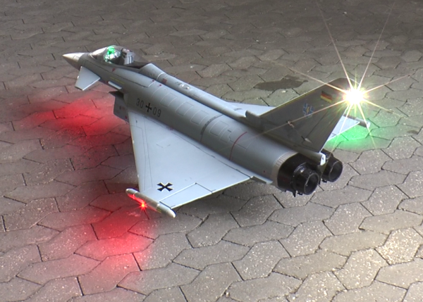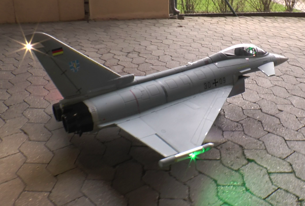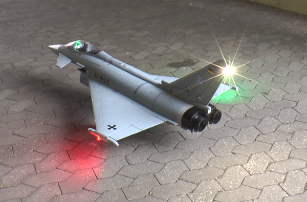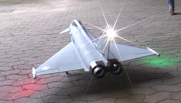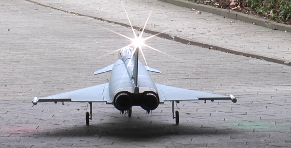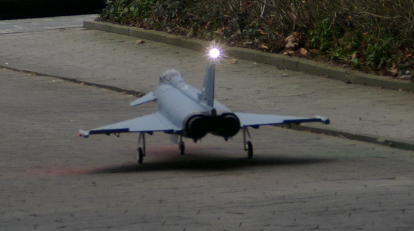 Jetzt war der erste Rollout meiner Eurofighter. Ziel des Tests war, die Helligkeit der Lampen bei Tageslicht beurteilen zu können, den Impeller einmal vom Sound zu hören und ein erstes Shooting mit Video zu erstellen.