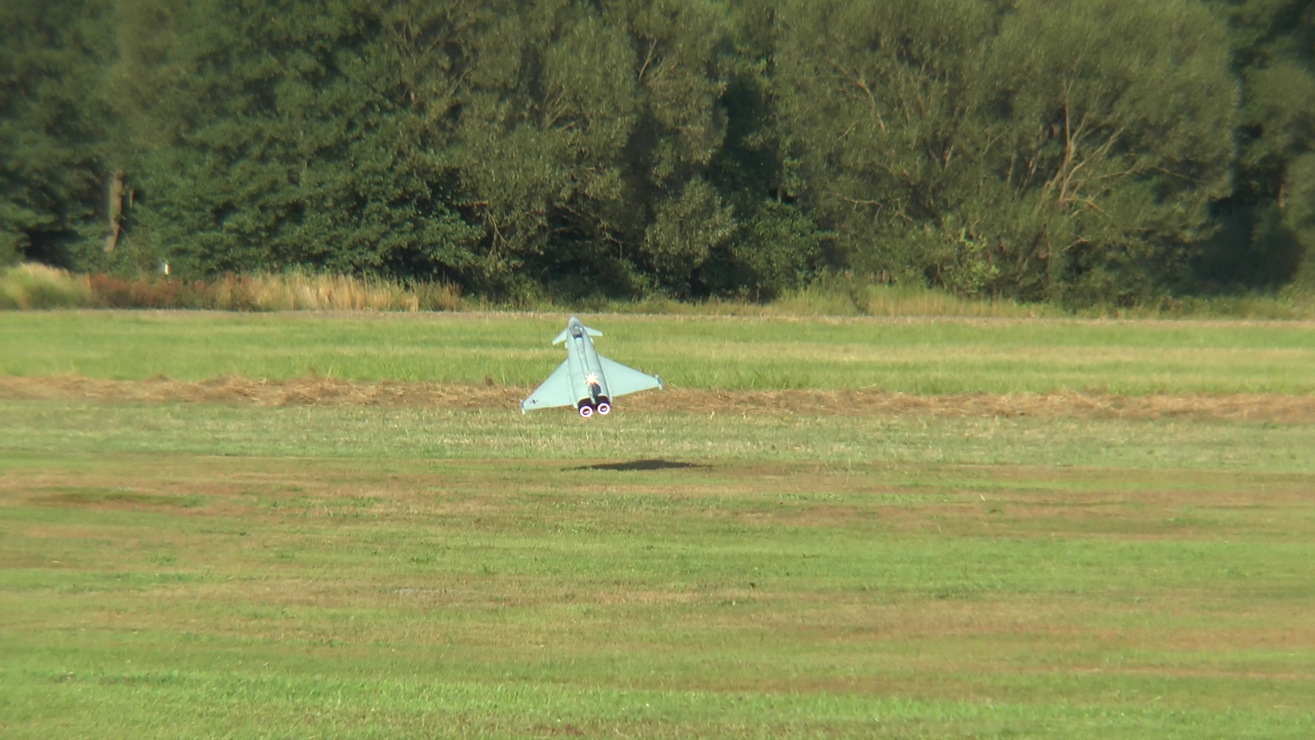 Beim zweiten Flug ging es darum, ob meine Eurofighter auch auf unserer Graswiesen-Piste fliegen kann. Nun möge der vorab informierte Leser vielleicht entgegnen, dass die Eurofighter2 von Freewing vor nicht ganz einem dreiviertel Jahr mit einem rasentauglichen Fahrwerk beworben wurde...