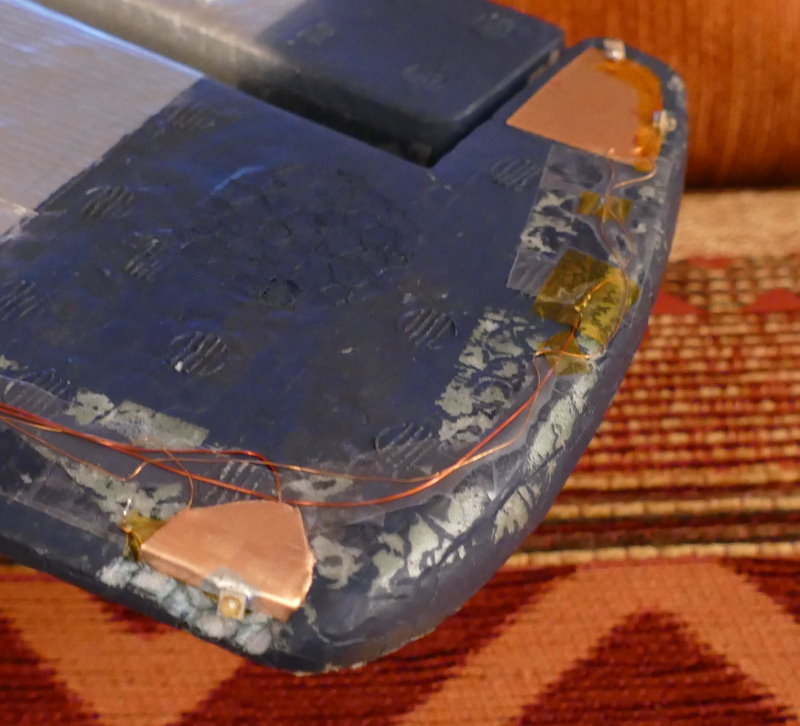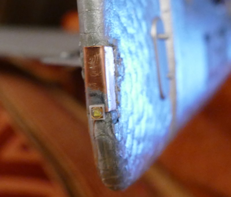 Hier das ACL am Seitenruder. Die Anode wird über die Kante am Kupferblech kontaktiert, sonst gäbe es hier einen Kurzschluss.