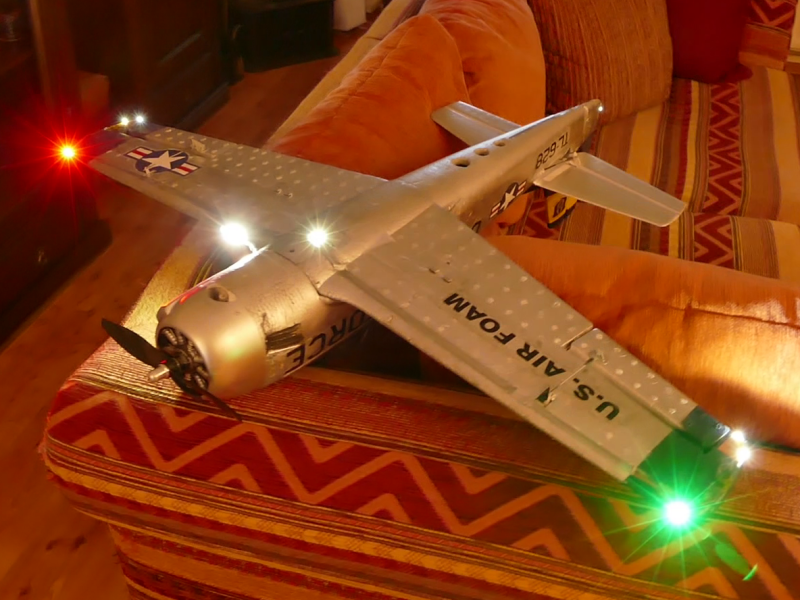 Die Beleuchtung besteht aus den Positionslichtern, zwei ACLs unten und hinten und einem Landescheinwerfer.