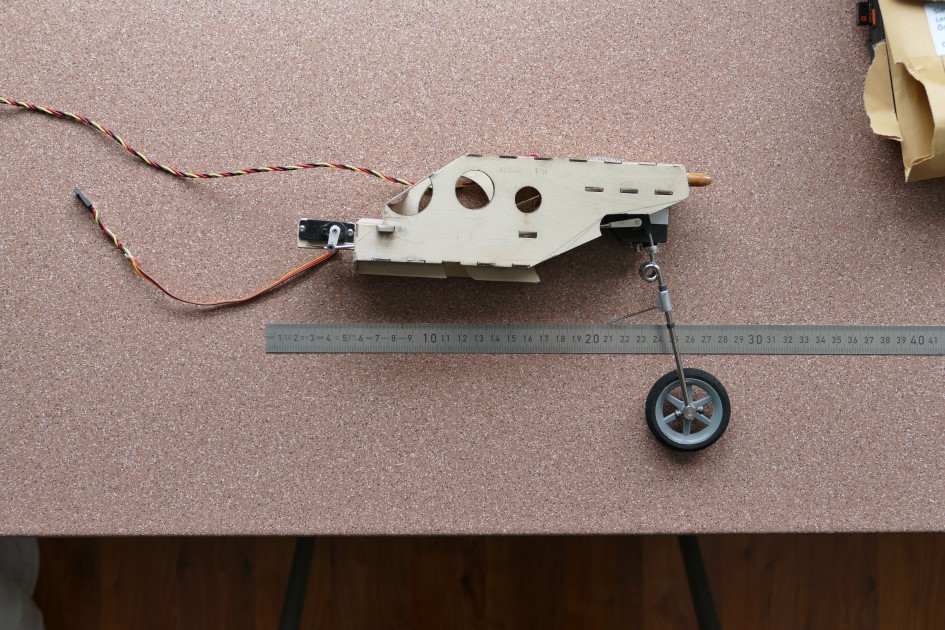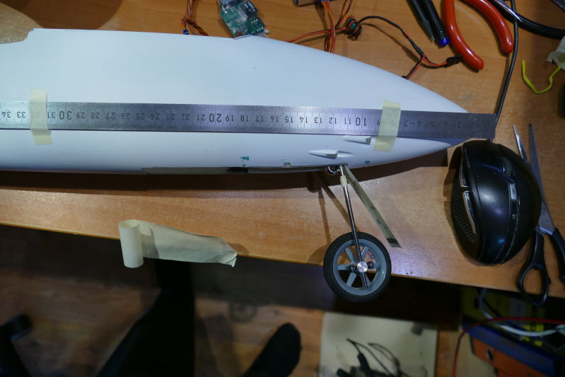 Auch die Fahrwerksbeinlänge war nicht gerade einfach zu ermitteln. Schließlich war der Flieger noch nicht zusammengebaut, und die Länge des Bugfahrwerks ergibt sich aus der Länge des Haupftfahrwerks, allen Toleranzen und so weiter...