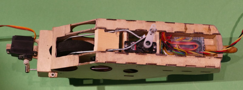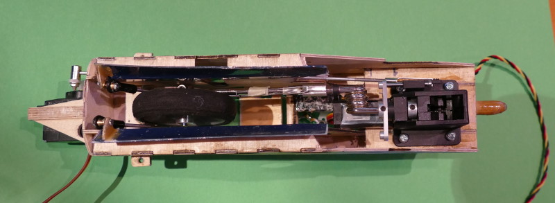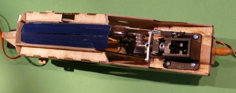 Im nächsten Bild ist schön das Bugrad-Steuerungservo zu sehen. Das kommt nun unter dem Akku zu liegen.