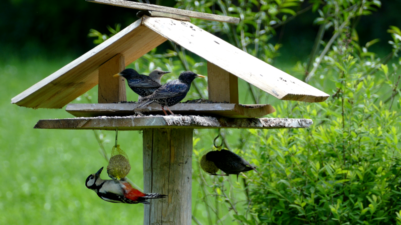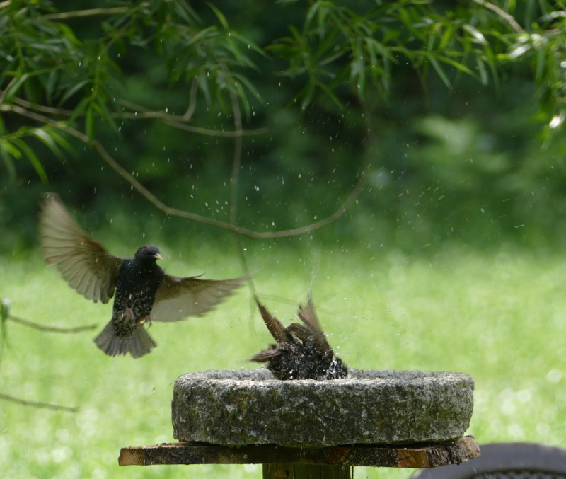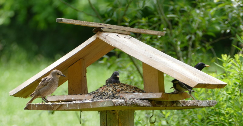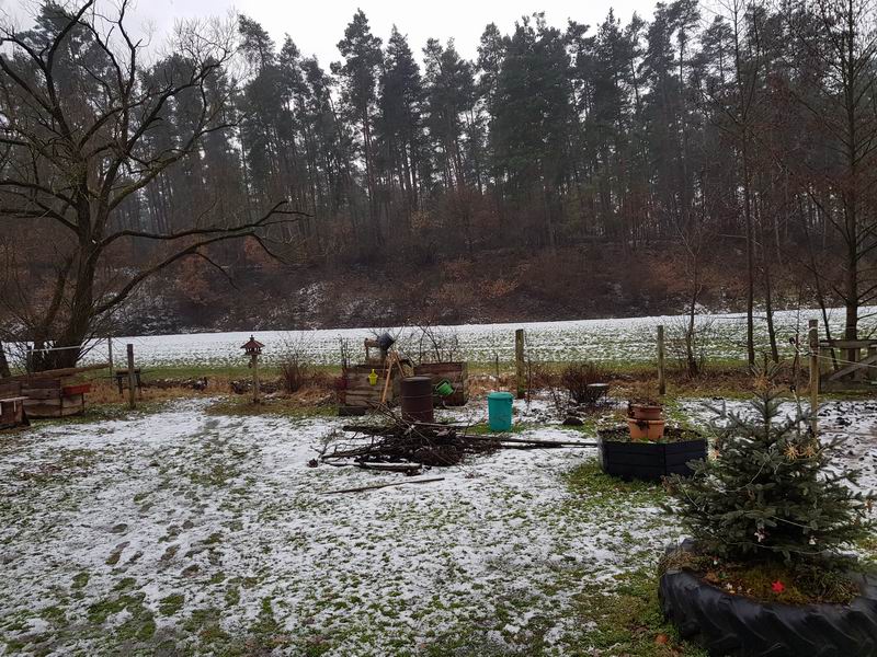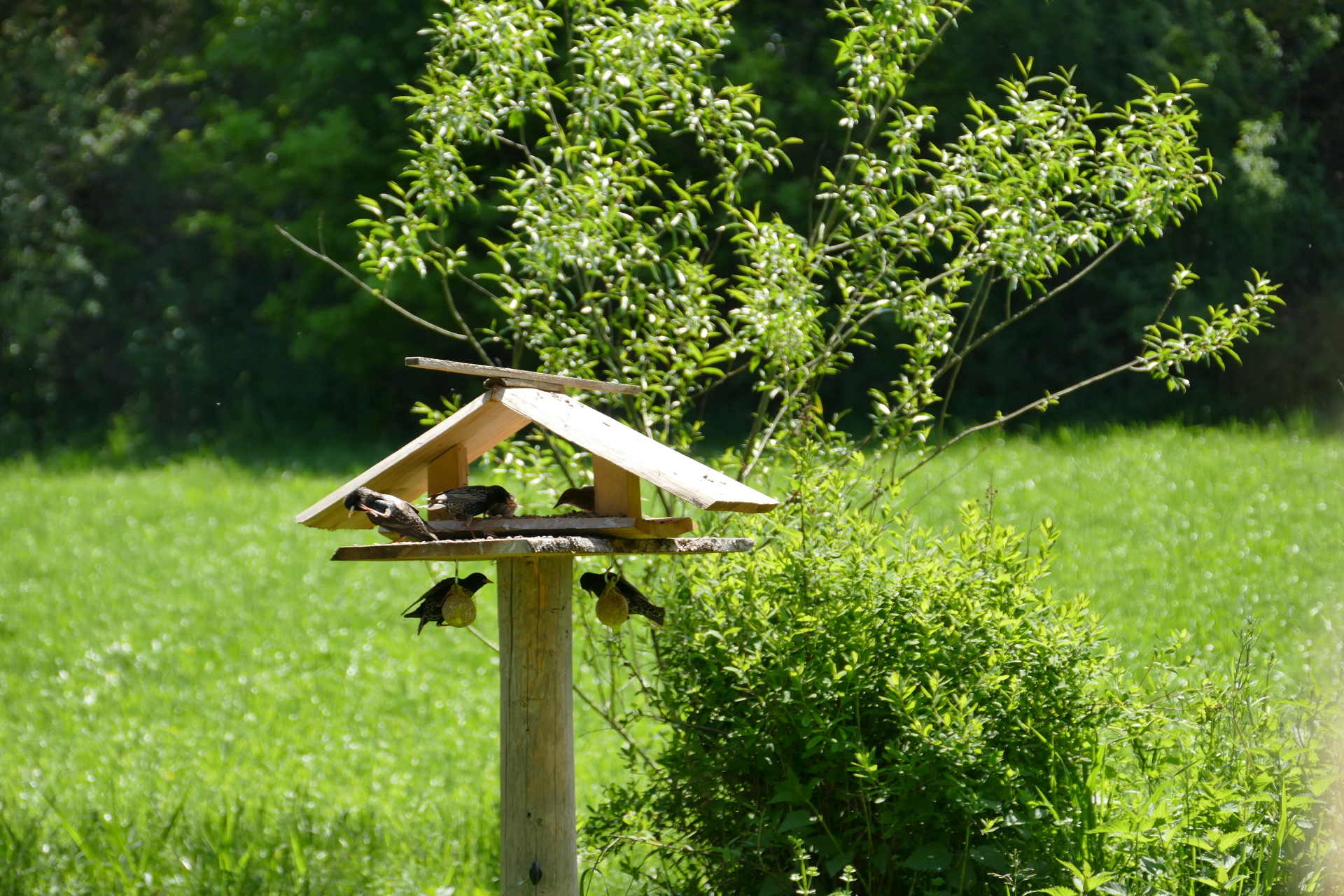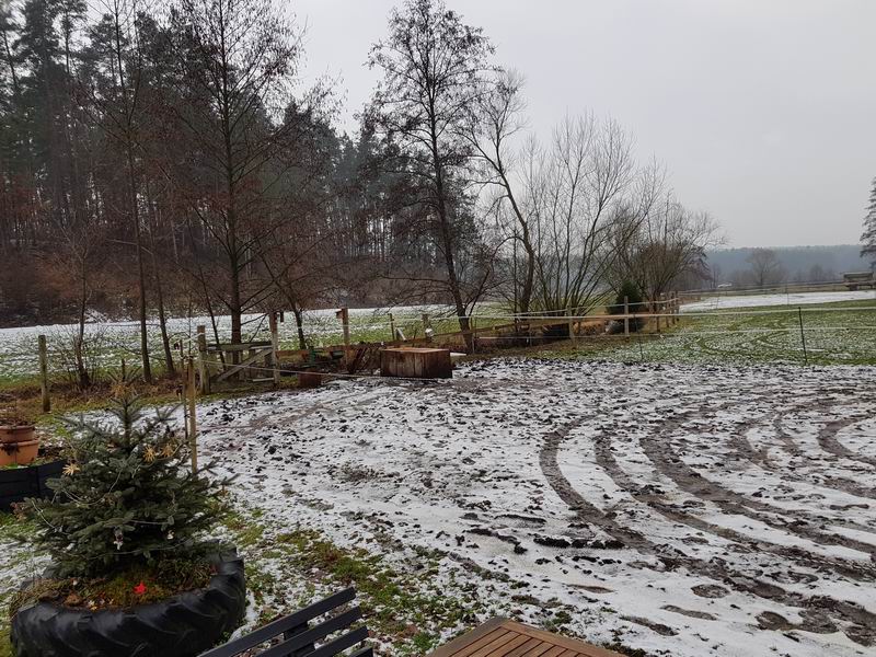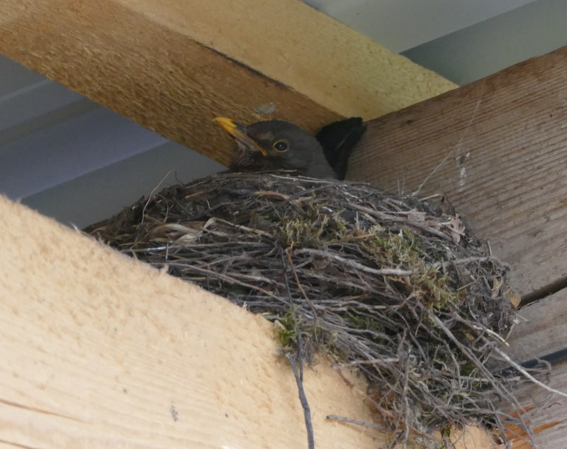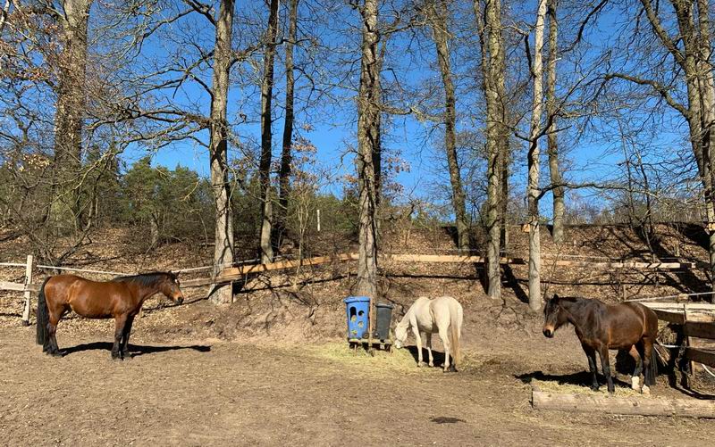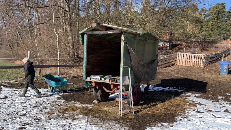 Inzwischen hat sich in der örtlichen Vogelwelt herumgesprochen, dass es hier Brutplätze, Futter und Schutz gibt. Aus dem Grund haben wir jede Menge Stare, Amseln, Eichelhäher, Körnerbeißer, Goldammern, Buntspechte und andere Vögel am Stall. Auch ein Entenpärchen ist eingezogen.