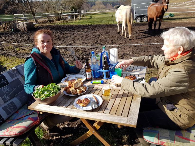 Julia machte einen Wanderritt und übernachtete bei uns. Da waren natürlich unsere Pferdis aus dem Häuschen:
