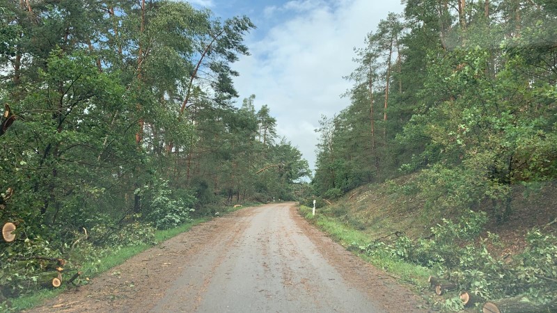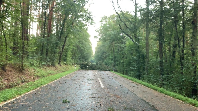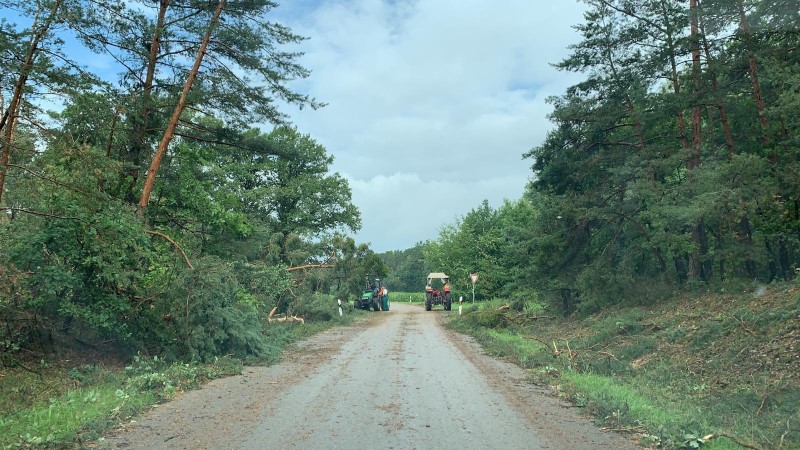 Alle Zufahrtsstraßen waren durch umgefallene Bäume blockiert. Die B2 war komplett dicht.
