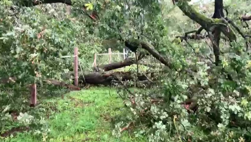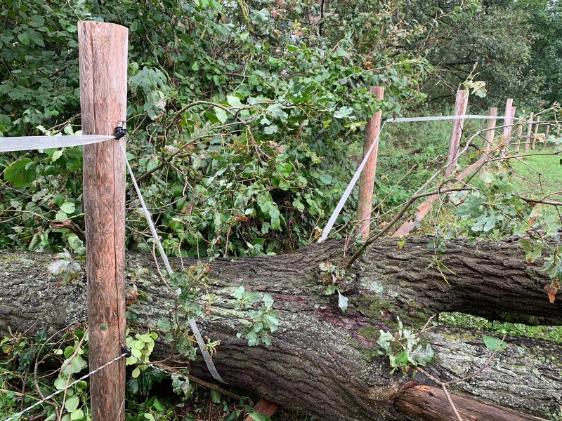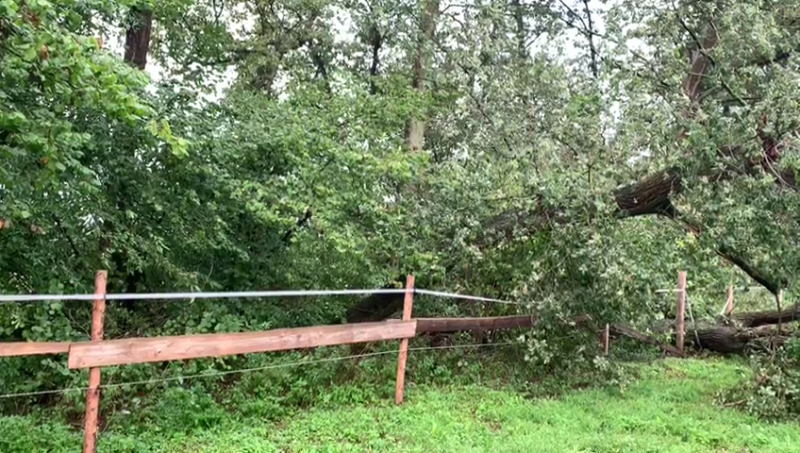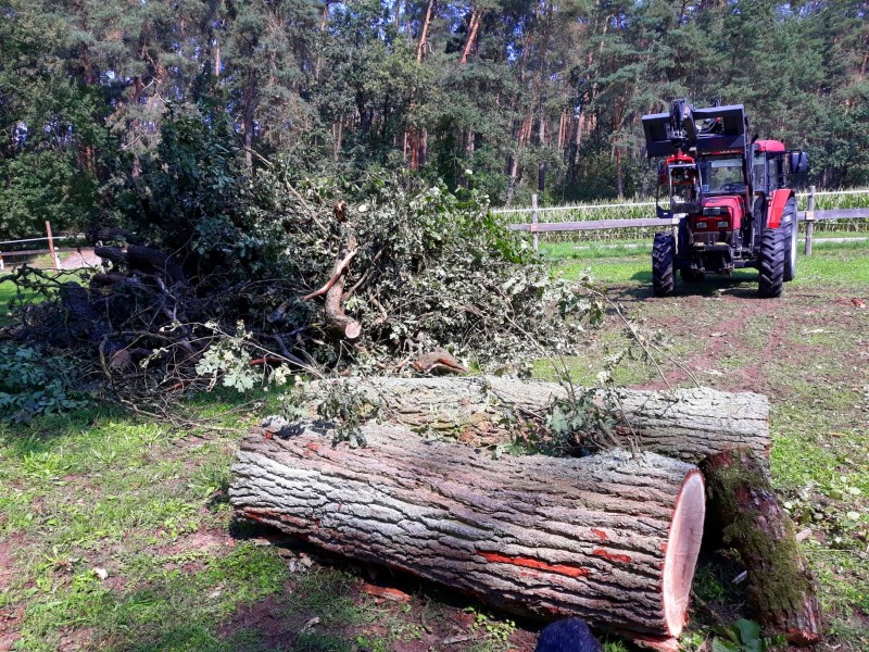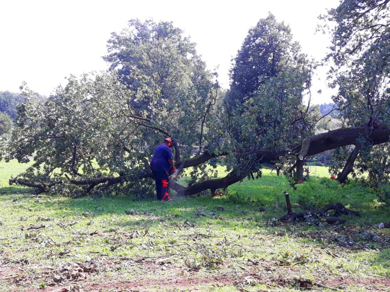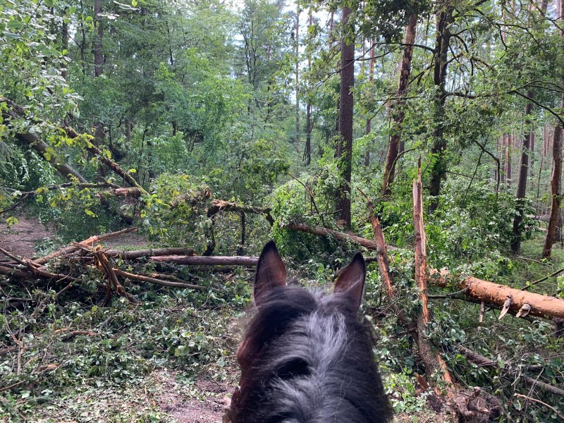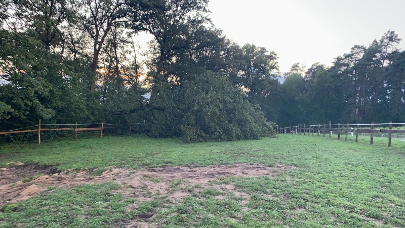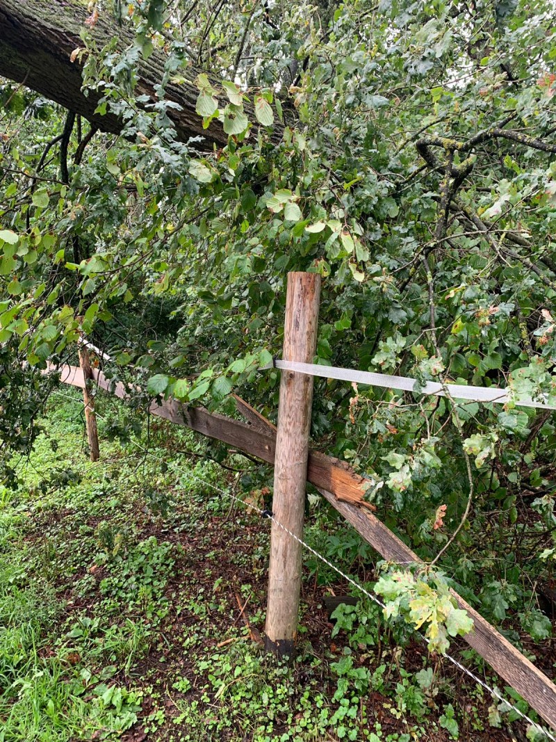 Auf unserer Weide waren ettliche Bäume umgefallen. Sogar Eichen mit geschätzt 150 bis 200 Jahren waren entwurzelt worden.