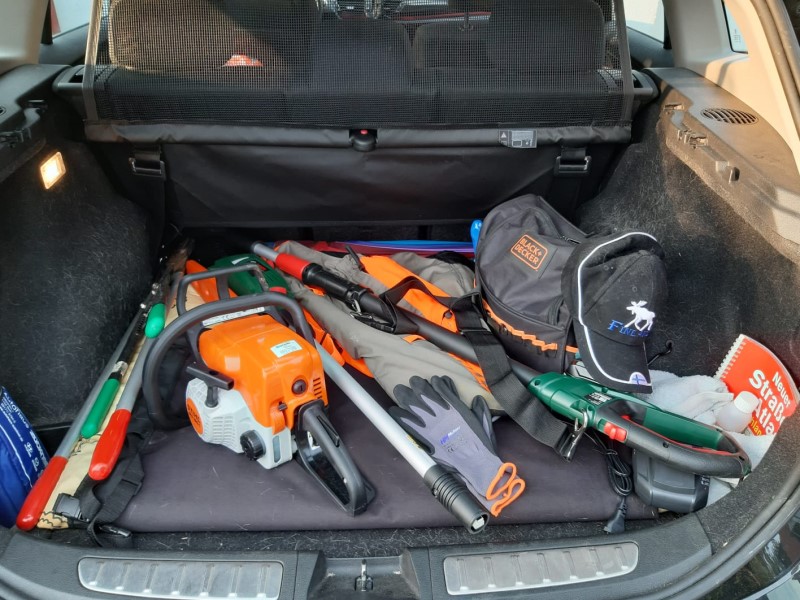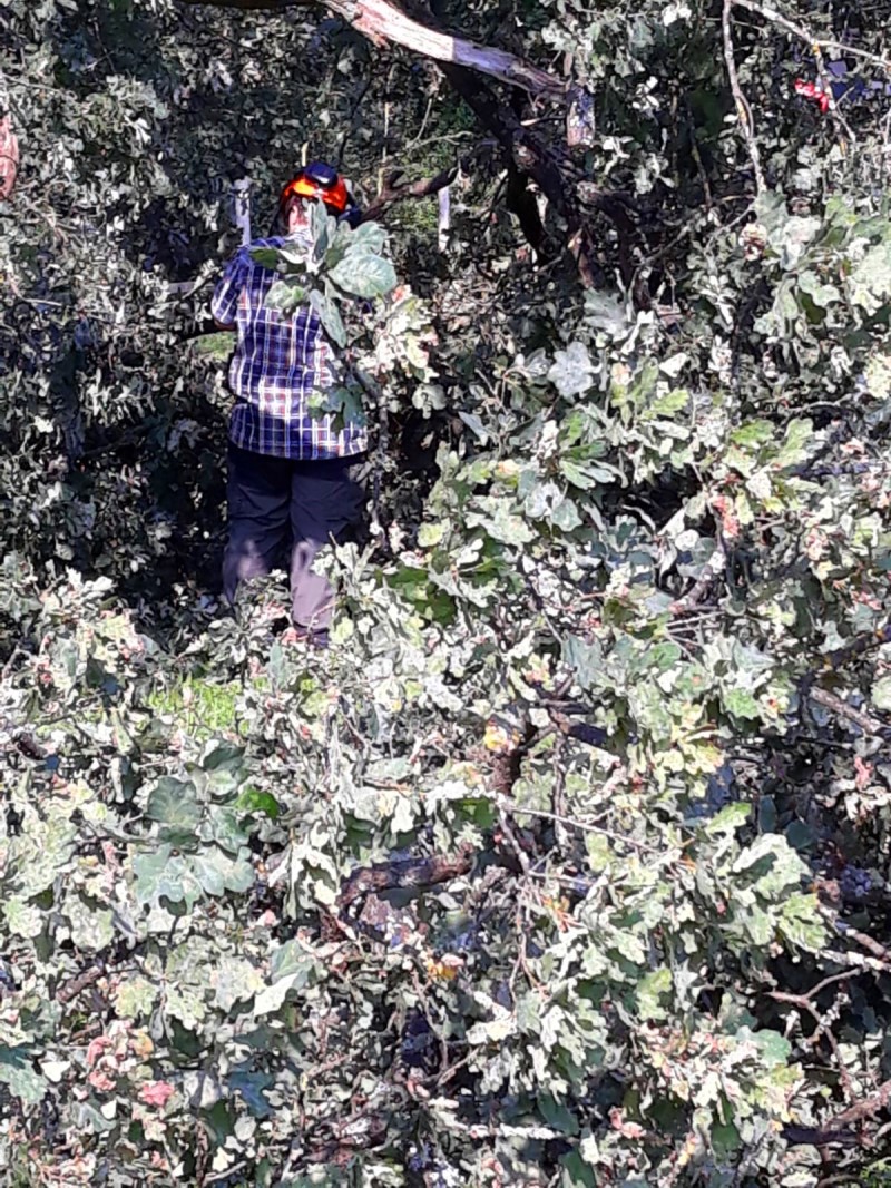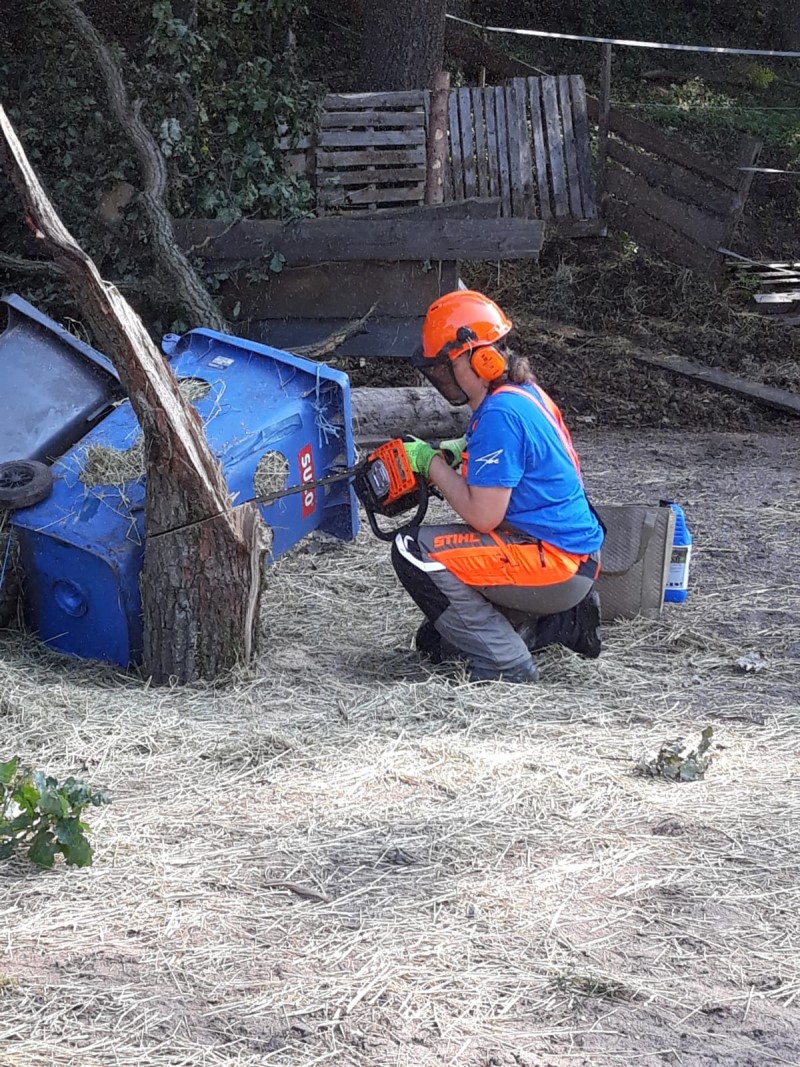 Am darauf folgenden Wochenende war dann Kettensägen angesagt. Wir hatten Glück dass uns ein Bauer dabei helfen konnte.