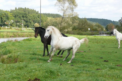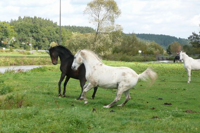 Nachdem Sano die Fohlen eingekocht hatte, machte er sich an die beiden Stuten von Champion ran. Das war natürlich für Champion eine ganz neue Situation - bisher war er der einzige Wallach.