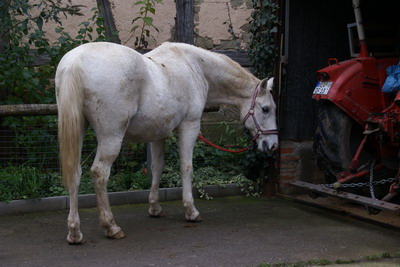 Doch unsere Pferde waren unglücklich. Sie kamen in einem Offenstall unter auf dem es kein Grün gab. Außerdem war die Pferdedichte pro Quadratmeter sehr hoch was zusätzlich Streß machte. Wir merkten sehr schnell daß Sano sich negativ veränderte.