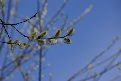 Die ersten Hummeln und Bienen sammeln Blütenstaub.