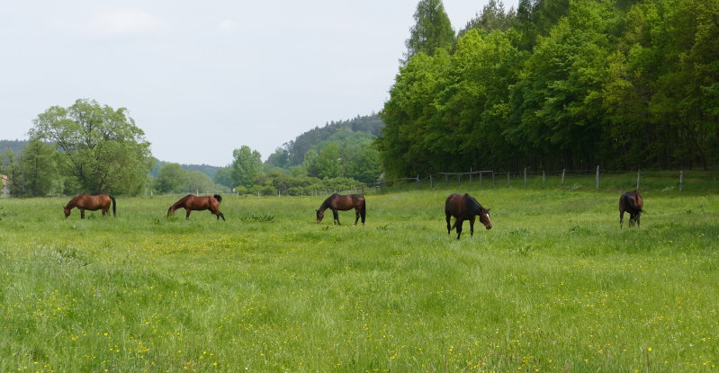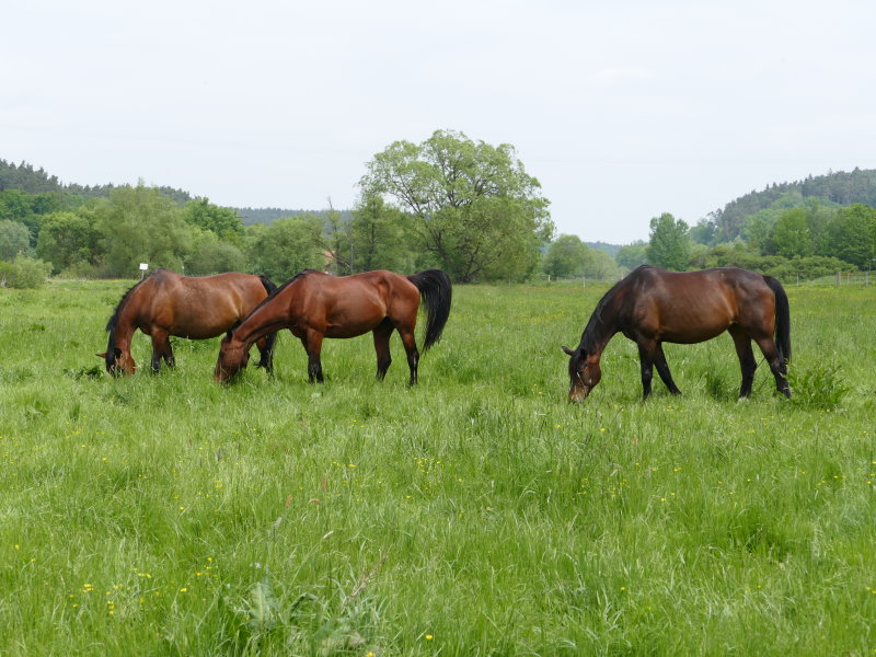 Klar, das Gras ist saftig und reichlich, aber die Damen und Herren wollen auch Karotten, Mesh, Hafer, Äpfel und Bananen als Nahrungsergänzung.