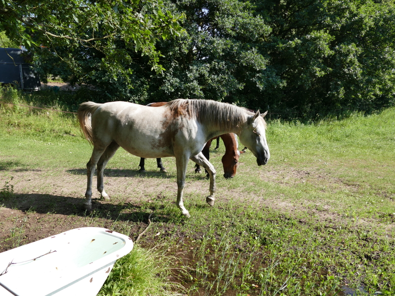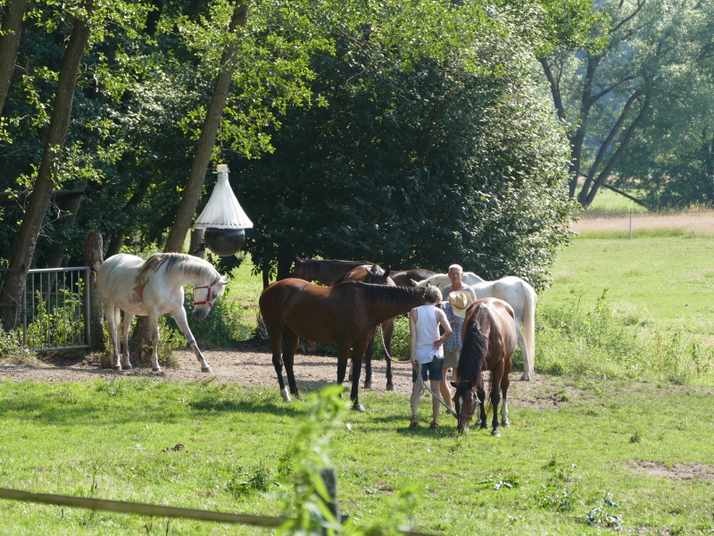 Gestern war es wieder einmal so weit. Die Sommerweide ist so gut wie abgefressen, Die Pferde müssen auf die Weide im Offenstall. Dumm nur, dass dieses Wochenende das mit Abstand heißeste Wetter in diesem Jahr hat. Außerdem hatten die Bremsen sich schon einen Latz umgehängt und warteten im niedrigen Strauchwerk auf ihr Abendessen.