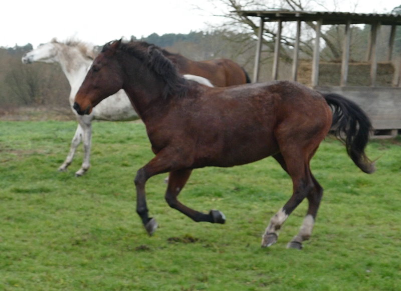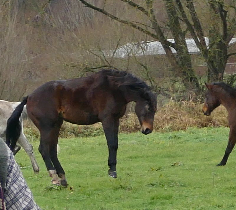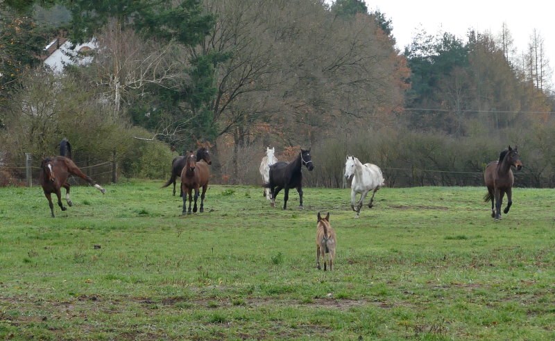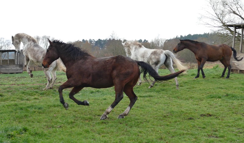 Nachdem alle Pferde ihre Halfter hatten, ging es los in den Offenstall. Dort angekommen haben wir die Pferde wieder los gelassen: