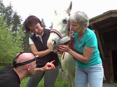 Heute werden wir von unseren Schaukelpferdchen jeweils eine Hand voll Pferdeäpfel separat in Tüten abfüllen und schön beschriften. Die Schachtel "Rosendünger" geht dann an ein Institut, die den Kot auf Würmer (Anzahl und Art) untersuchen. Entsprechend wird sich dann entscheiden, ob, und welche Wurmkur unsere Vierbeiner bekommen. Eine Wurmkur ist ein Gift, das die Würmer, die im Darmtrakt der Pferde leben, tötet. Da wir alle (Pferde, Menschen, Würmer) von der Anatomie entfernte Verwandte sind, ist ein Wirkstoff, der Würmer umbringt, auch giftig für Pferde (und Menschen). Letzteres ist im Beipackzettel der Wurmkuren ausdrücklich vermerkt. Aus diesem Grund sind wir froh, wenn wir mit dem Zeug so sparsam wie möglich umgehen können.